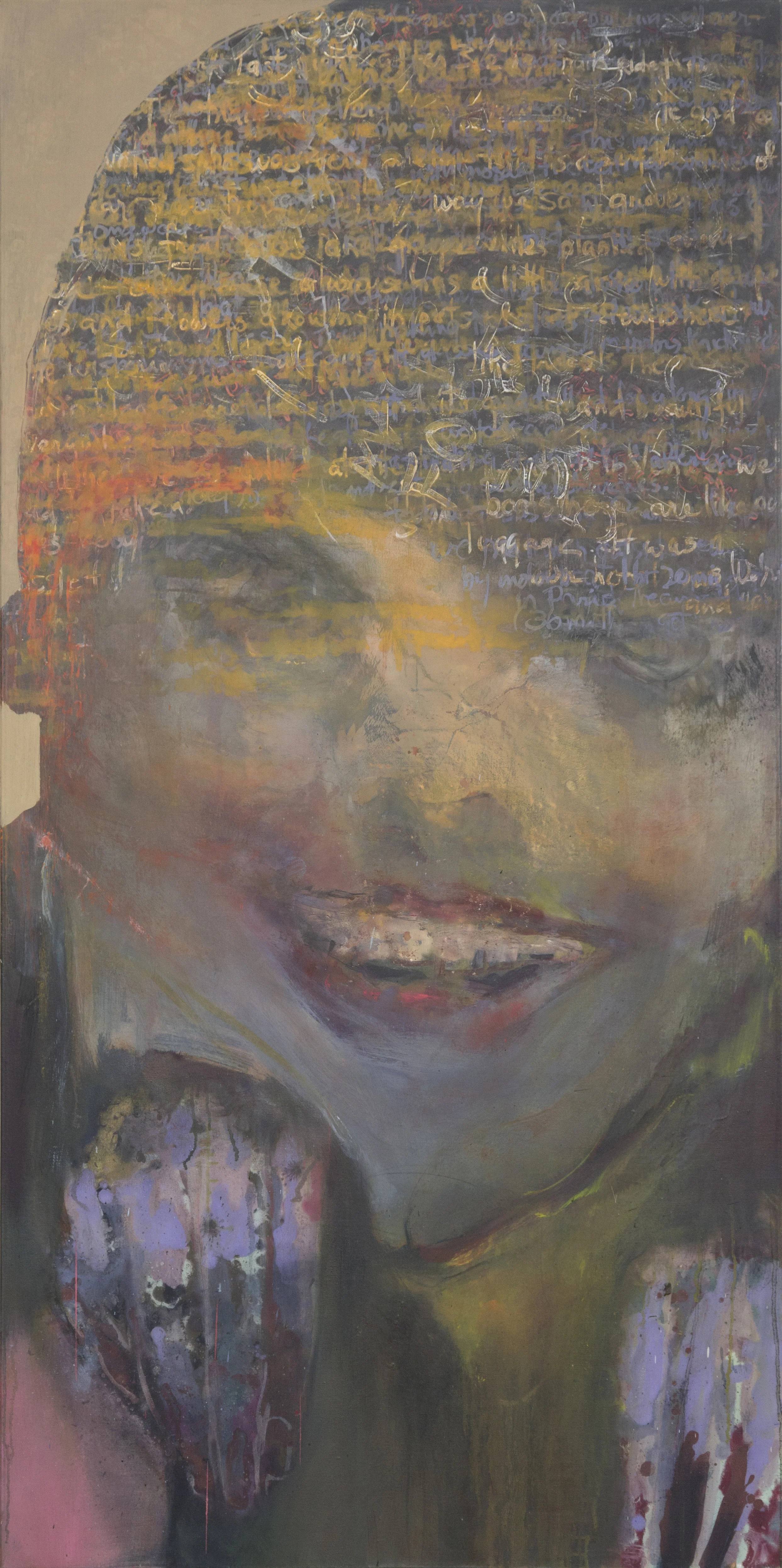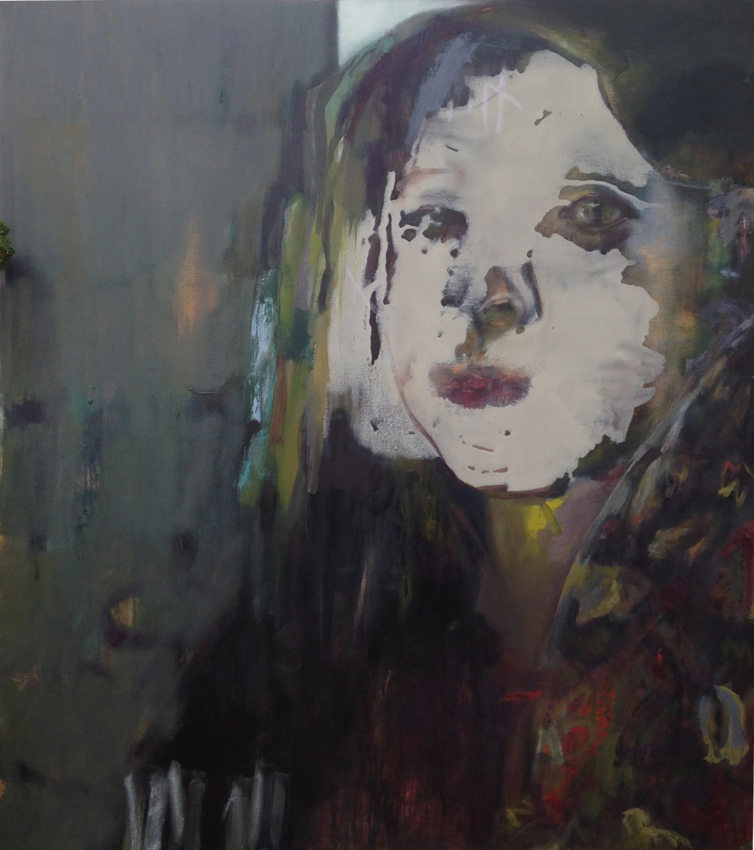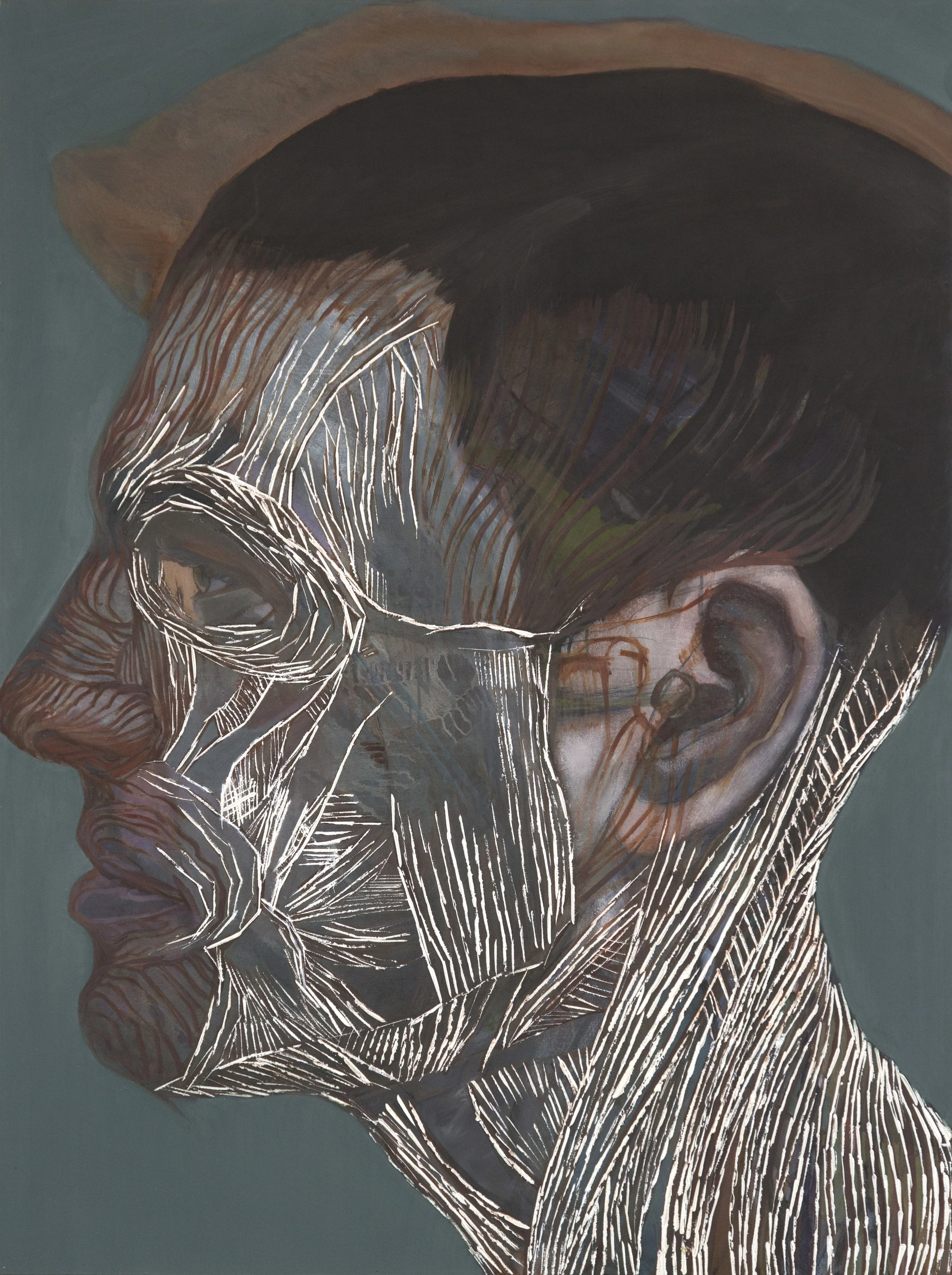 For this group of paintings titled Hard Data Soft Flesh, I use blood relatives as my subject matter, struck by the staggeringly improbable series of events that has led to right here, right now. Each painting is an evolution of mark-making that begins with a conventional portrait study. This is a way for me to spend time with the person, and to really understand their physical landscape. Everything at this point must make sense so there is no mystery about any part of the painting. Everything must make sense except the unexpected, inexplicable result.