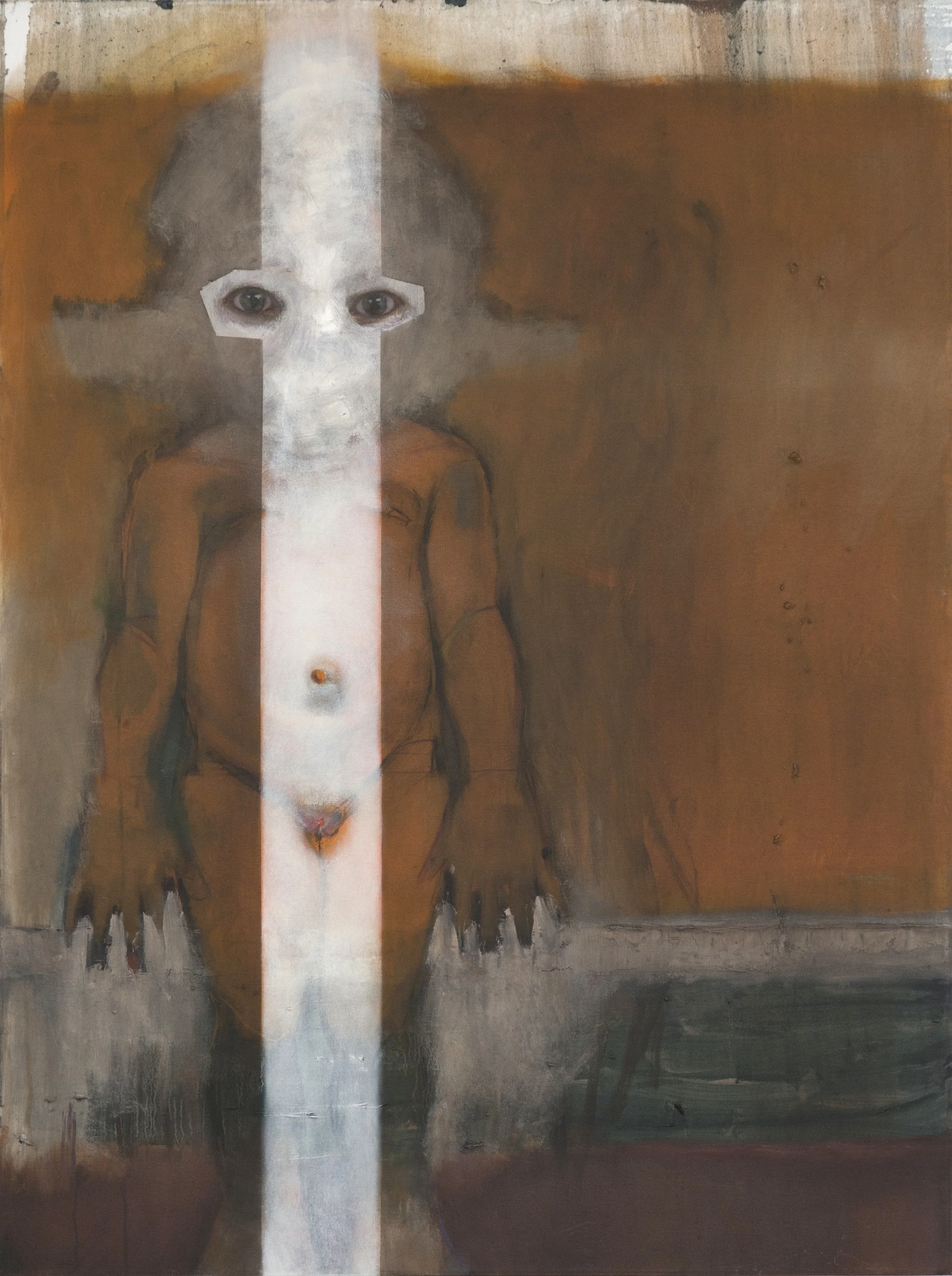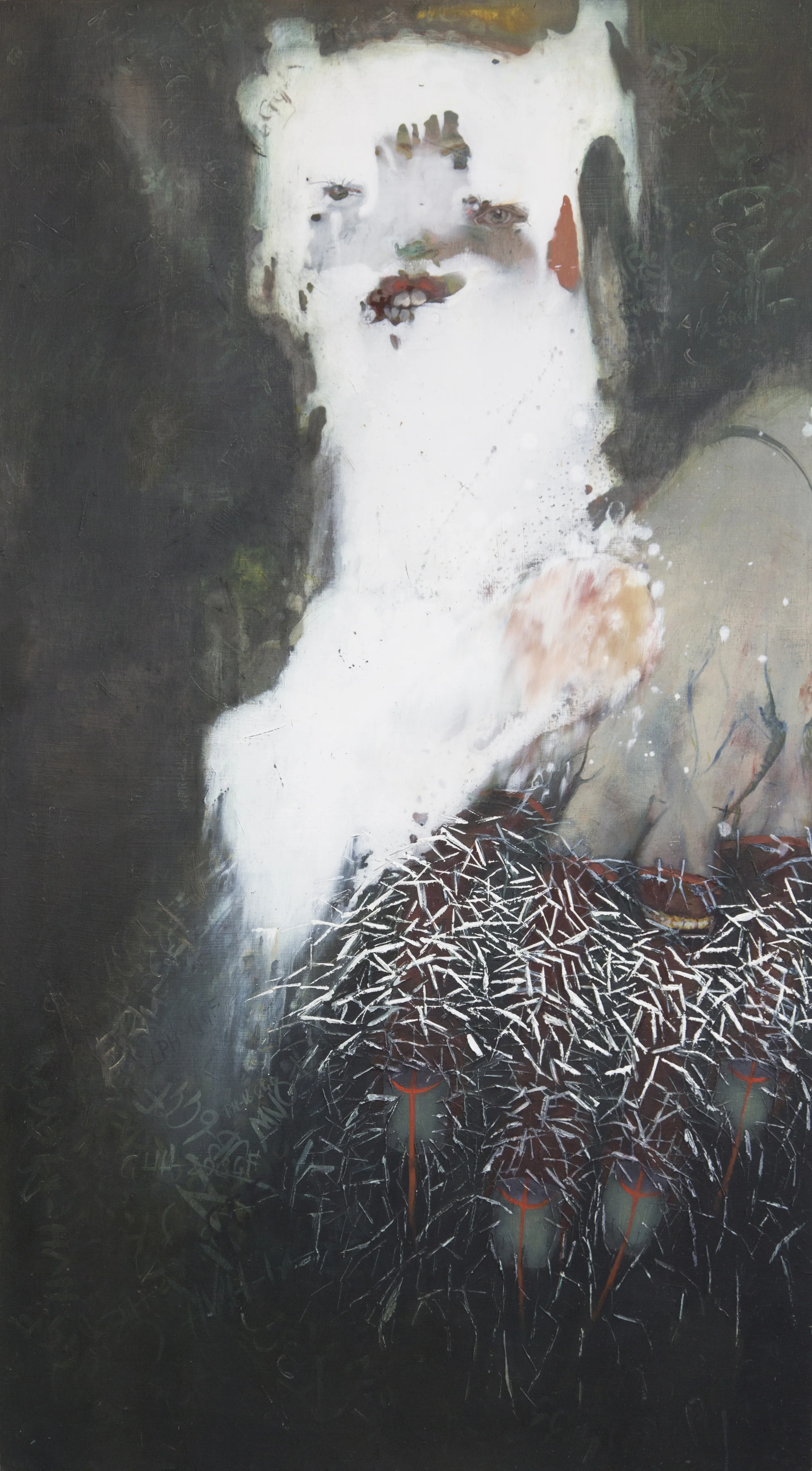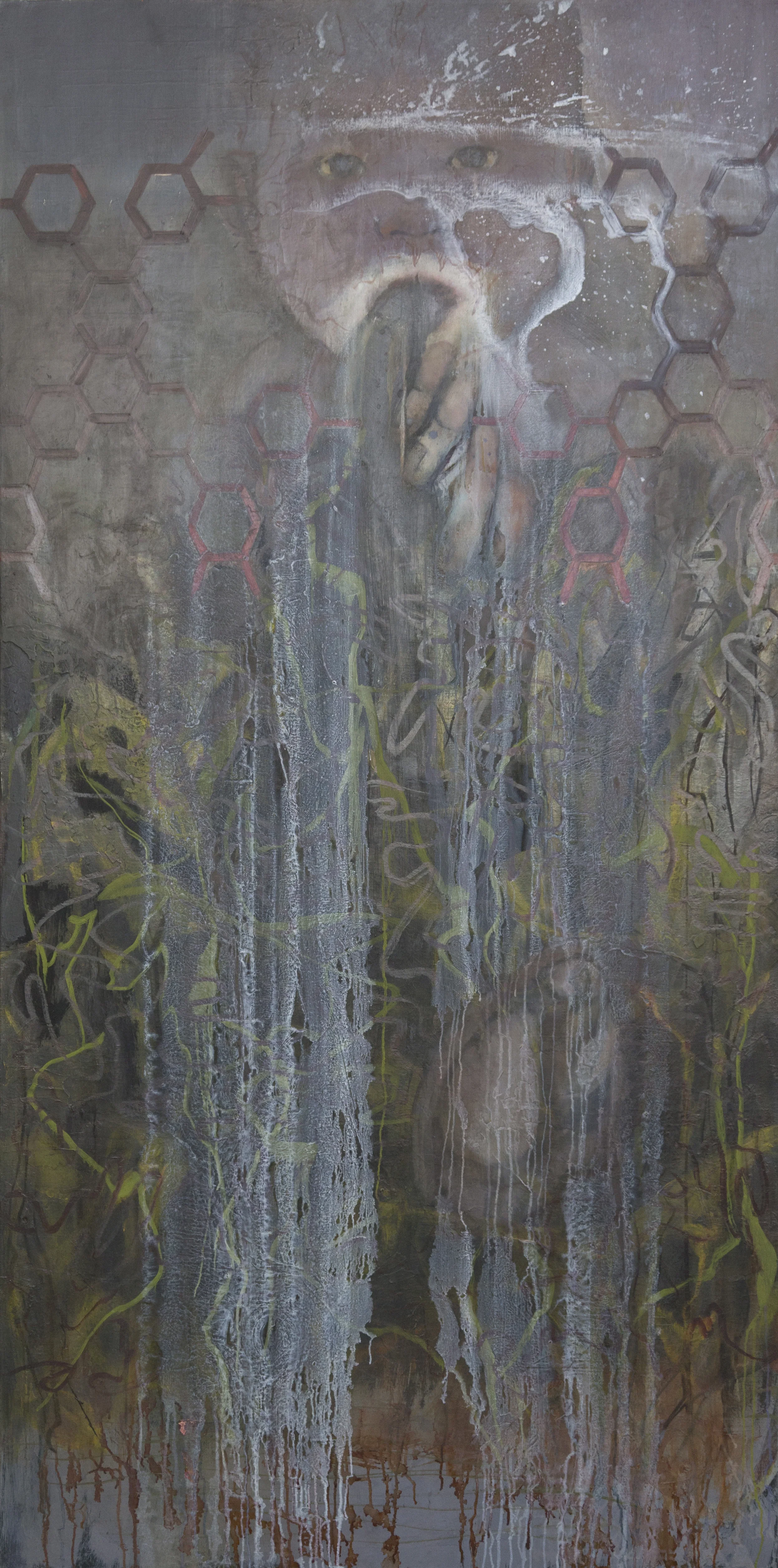 For this group of paintings titled Hard Data Soft Flesh, I use blood relatives as my subject matter, struck by the staggeringly improbable series of events that has led to right here, right now. Each painting is an evolution of mark-making that begins with a conventional portrait study. This is a way for me to spend time with the person, and to really understand their physical landscape. Everything at this point must make sense so there is no mystery about any part of the painting. Everything must make sense except the unexpected, inexplicable result.
